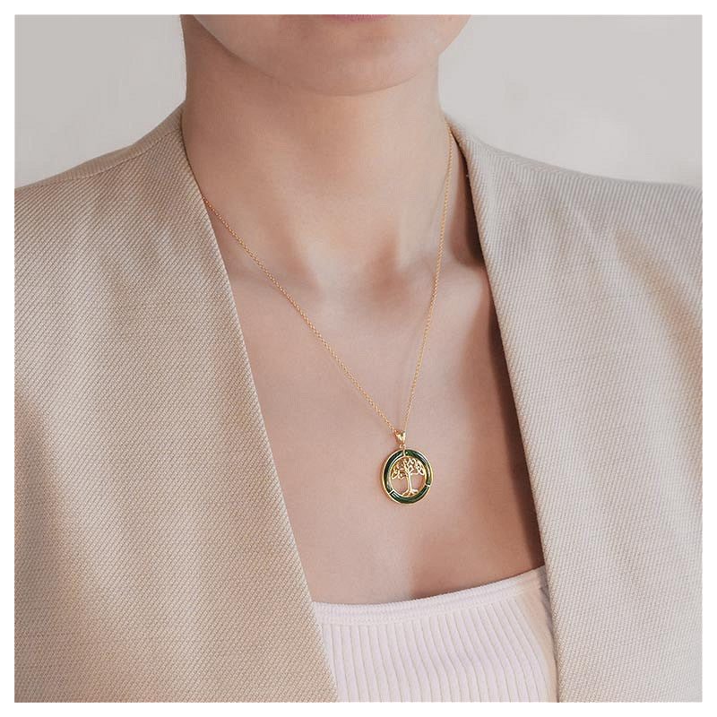 14KT Gold Vermeil Malachite Tree of Life Necklace